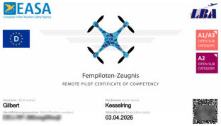 Zertifizierter Drohnenpilot mit folgenden national- und