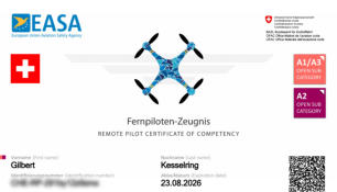 - Pilotenlizenz SVZD-Uno der Swiss Federation of Civil Drohnes
